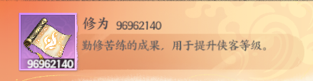 修为:勤修苦练的成果,用于提升侠客等级。