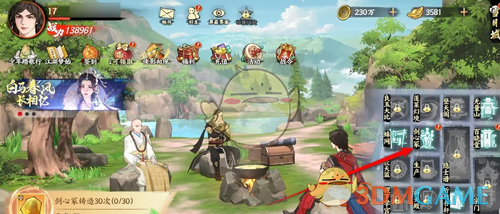 2、然后在菜单栏页面,点击剑心冢,进入装备打造页面;