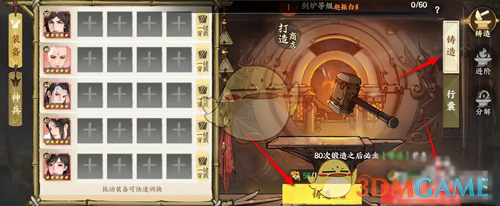 答:在剑心冢选择装备进行铸造,将铸造好的装备点击穿戴即可。