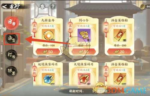 3、在杂货页面下滑,找到最下面的剑心令进行购买;