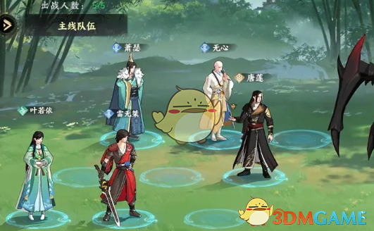 4、进入到编队页面,选择出战人员,累计五个人,选择好点击右下角的战。