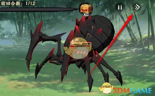 5、会出发蓬莱幻境的挑战剧情,可在右上角点击跳过的箭头,战斗结束就可以结算伤害。
