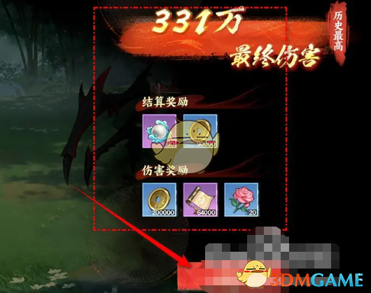 6、最后根据战斗中的伤害结算分数,在右下角点击返回即可领取结算奖励。