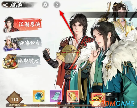 2、进入到招募界面选择一个招募类别,有江湖名侠、四海交知和侠影随心。