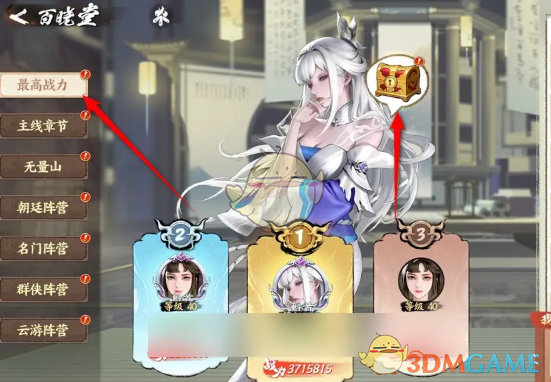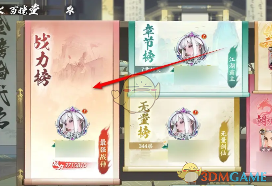 3、进入到百晓堂的对应榜单界面,在角色位置点击礼包图标即可触发里程碑奖励弹框。