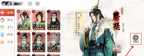 1、首先我们在侠客页面,点击右侧的详情进入升级页面;