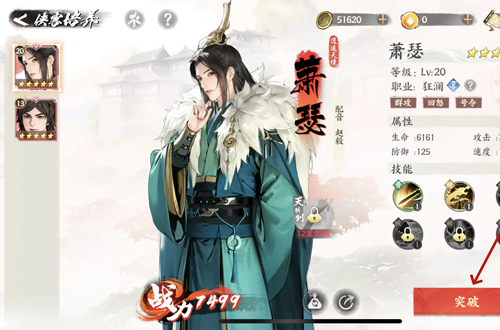 3、接着在侠客突破页面,消耗材料后点击突破按钮;