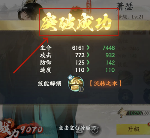 4、最后完成突破后,即可提升生命、攻击、防御、速度等各方面属性;