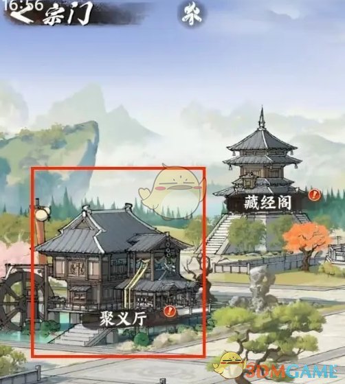 2、进入宗门玩法后,前往聚义厅的功能页中;