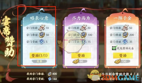 答:在宗门内完成赞助即可获得大量的宗门俸禄