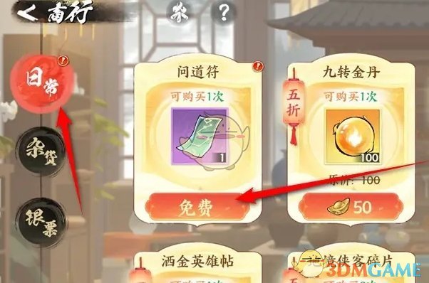 4、每日可以免费购买1次问道符,购买后即可获得该道具。