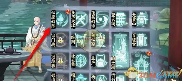1、我们点击主页菜单栏,在弹出的功能栏中点击心魔幻阵玩法前往;