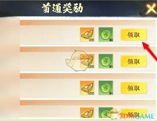 4、最后将奖励物品全部点击领取及可以获得首通奖励物品了。