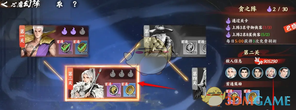 2、在心魔幻阵页面内,点击需要挑战的章节前往;