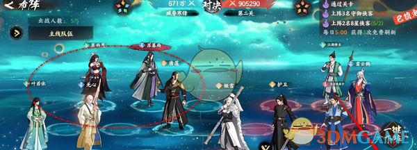 4、在布阵页面,选择出场的主线队伍,点击右下角的战;