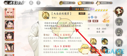 4、最后在侠客的绝学技能中,即可看到技能的等级和具体效果;