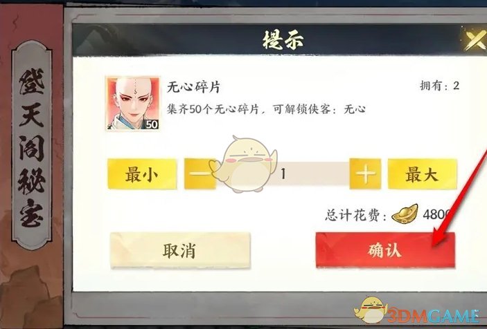 4、每个秘宝消耗的元宝不同,在购买页面点击确认即可完成秘宝的购买。