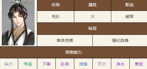 《如鸢》毛玠是一位火属性的破军角色,有着出色的单体伤害,并且每次使用技能都可以强化自己的输出,因此很多玩家都好奇如鸢毛玠技能是什么,下面小编就给玩家们带来了如鸢毛玠的技能天赋介绍。