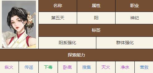 《如鸢》第五天是一位阳属性的神纪角色,能够强化队伍中其他阳属性角色的伤害,因此有的玩家好奇如鸢第五天技能是什么,接下来就由小编给大家带来了详细的《如鸢》第五天技能天赋攻略介绍,希望这篇文章可以帮助到大家!