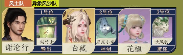 1、配队:谢沧行+韧竹士、白藏+岩崖小童、花楹+长风豹。