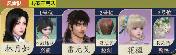 3、万彩蝶妖负责充能,酒坛灵提供控制,长风豹进行聚怪。