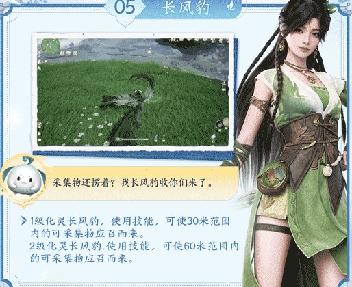 1级化灵长风豹,使用技能,可使30米范围内的可采集物应召而来。