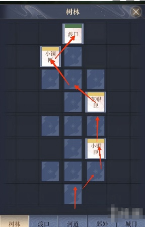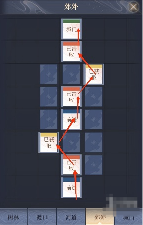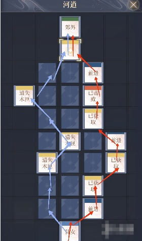 3、河道:侍女-前进中-穿过遗失木匣-穿过遗失木匣-往右前进-穿过遗失木匣穿过-西凉军-往右前进-侍女-达到郊外
