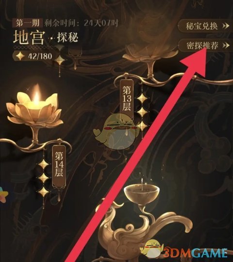 2、在地宫玩法中,点击右上角的密探推荐选项;