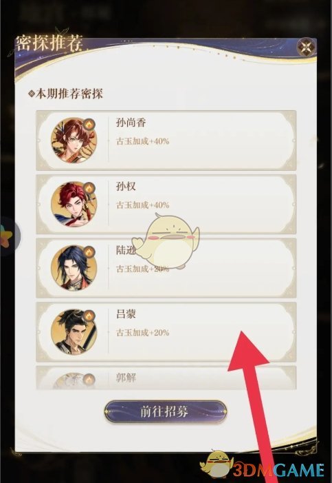 答:前往地宫找到推荐密探,即可查看到推荐的密探