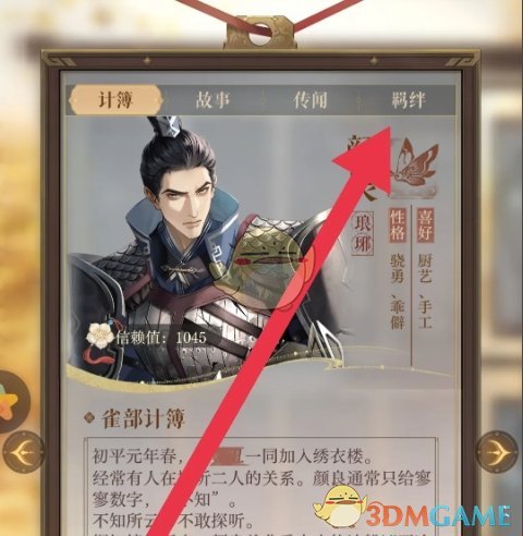 2、来到名册页面后,找到需要查看羁绊的密探;