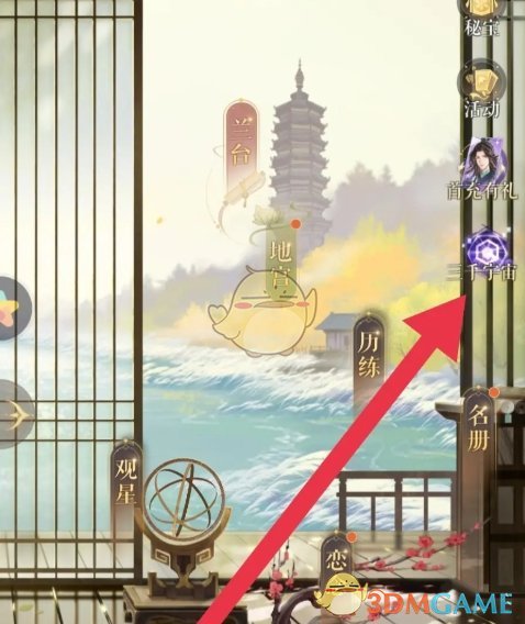 1、首先我们点击游戏主页右侧的三千宇宙功能前往;