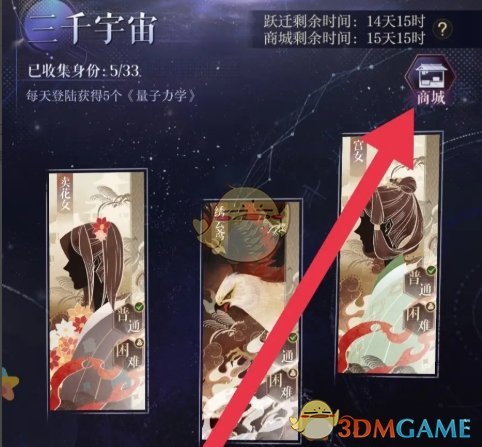 2、接着在三千宇宙页面,点击右上角的商城前往;