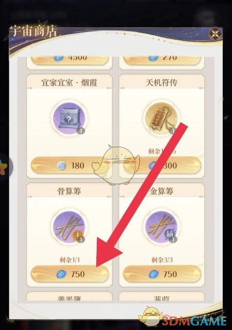 4、最后花费750货币,点击购买即可获得骨算筹;
