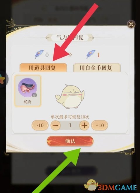 4、最后在恢复页面,选择道具或者是白金币恢复,继续点击确定即可恢复突发情况次数;