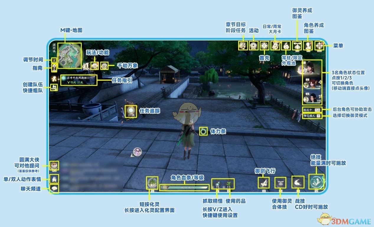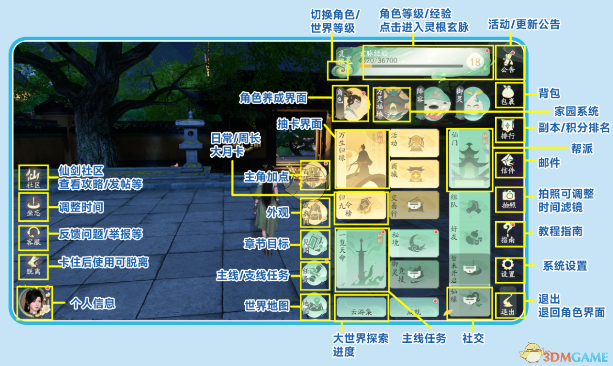 仙剑世界怎么玩,新手玩家刚进入游戏的时候需要优先熟悉游戏内的常用界面,为了方便玩家们对游戏的熟悉,下面就为大家带来游戏内一些常用界面的各类图标进行解析和标注,并针对游戏过程中常见的问题进行解答,帮助大家更快上手,获得更好的游戏体验。