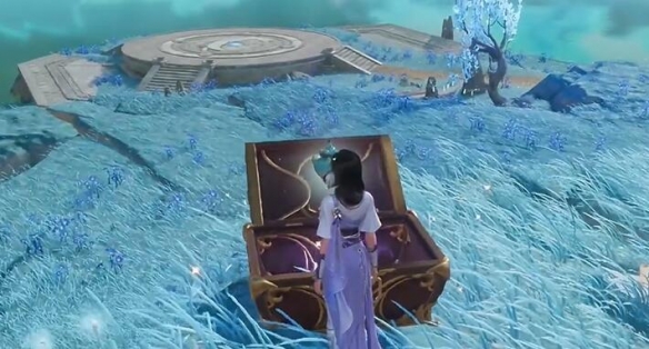 3、在旁边石头处完成小游戏即可开【宝箱】。
