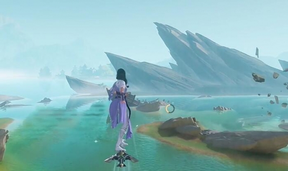 6、返回传送点飞到高处的山间那里。