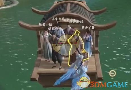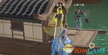 1、首先前往图中苏州阊门锚点处,到达后需要帮助下图中的人上船。