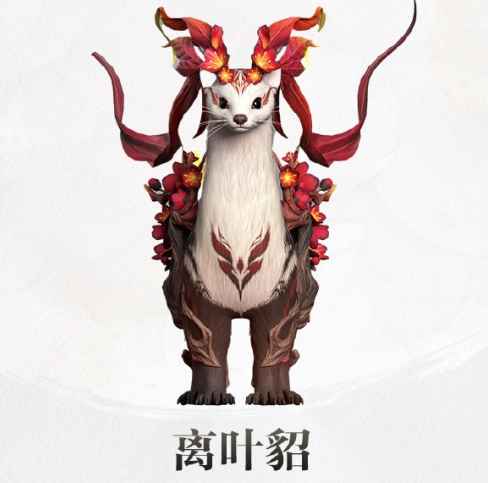 离叶貂作为神农体系属于兽族,为火属性,在上古时期,即将灭绝的雪貂被发现,吸收火魔神灵力的离叶,自此之后就成为幸存者,并成功改名为离叶貂。作为火属性的角色,主要的技能就是甩尾踩踏以及燃尽。