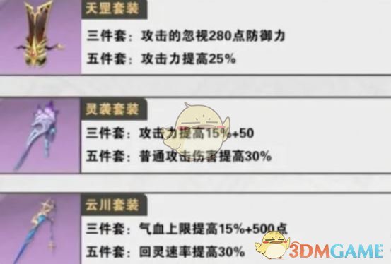 云川套:提高气血上限,增加容错率和保命能力,适合需要提升生存能力的玩家。