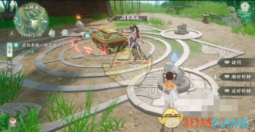 第四个石像的位置(17429,5101),这里石像的解锁方式是将石蟾的嘴都对向中间的图案。