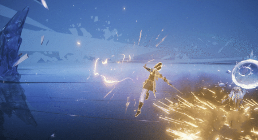 而真正令沈欺霜叹为观止的还是她华丽致命的大招技巧。放出大招,天突然暗了下来,沈欺霜举起飞剑,身边的气温似乎一瞬间降到了冰点。一朵晶莹的冰花盛开在天空,发出温柔清冷的光。然后这些冰花会像流星一样快速下落并准确击中指定地区,从而对范围内的敌人造成大范围伤害。当冰花落地时,大地笼罩在寒气之中,凝聚成薄冰霜,触到的敌人就会进入“结冰”的状态,行动缓慢而不断地掉血。这种技能的设计不仅视觉效果震撼,更让人感受到冰属性职业那种“美,但危机四伏”的独特魅力。