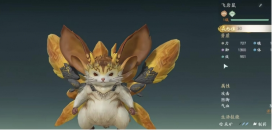 除了游戏中的玩家,可以拥有属于自己的宠物,宠物的数量也是比较多的,除了以猫妖为主的,还有叫做飞岩鼠的动物,是适合所有角色携带的,属于土属性攻击所触发的被动技能,可以使出战角色回零速率提升15%。