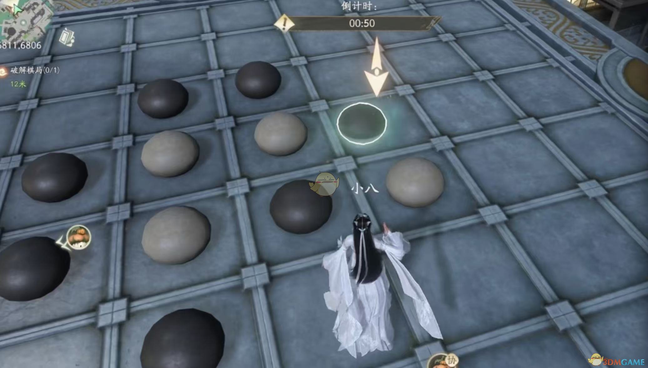 2、在剧情中遇到的第二关就是下围棋了,需要用黑棋把白棋围起来,没学过围棋的倒不用那么担心,很多玩法都是有系统自带提示的,你只需要用“御物”将棋子升起,然后放在任务提示的地方就行了。