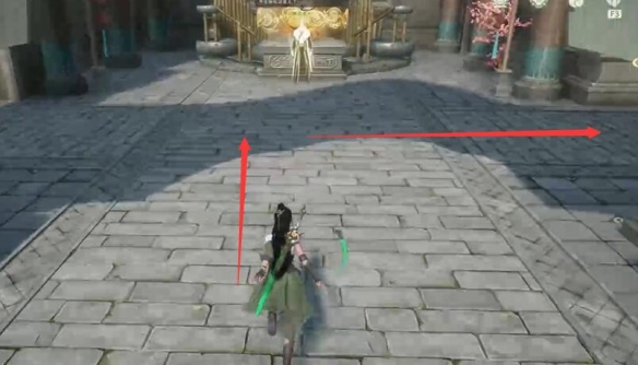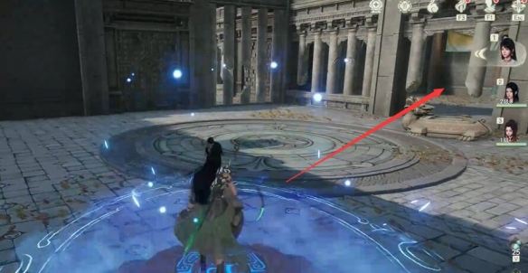 5、接着站在旁边的石像上,将前方的石头拉放在石像上