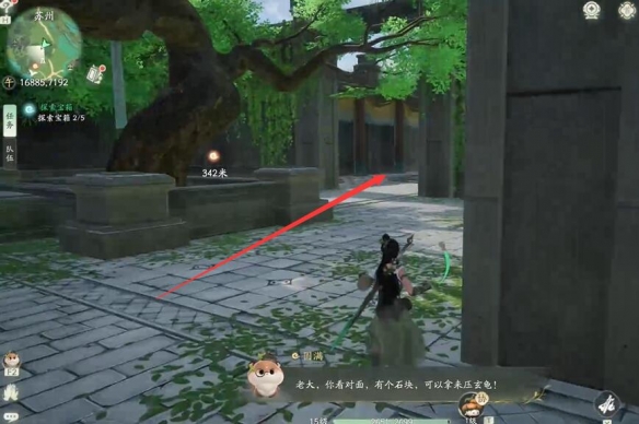 7、接着回到大树下拿到石像上的石头,再从大树旁边的路进入