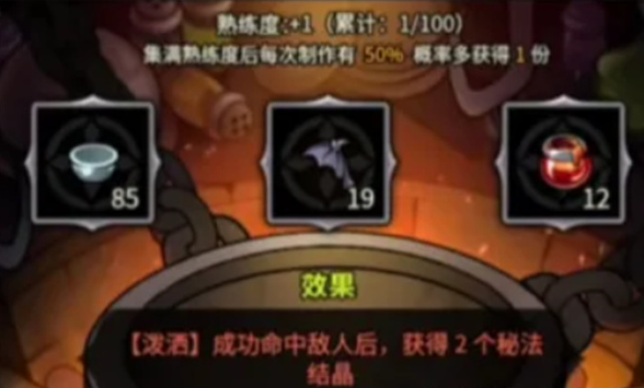 料理效果:使用【泼洒】技能成功命中敌人后,获得1~2个秘法结晶(持续30秒)。