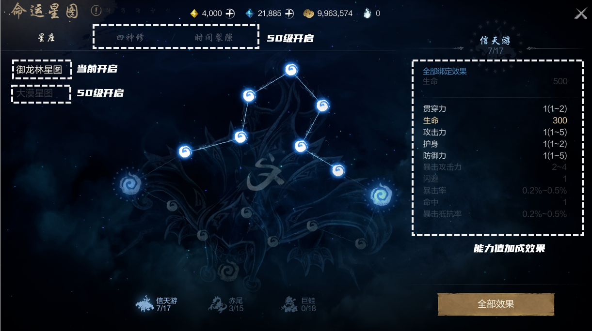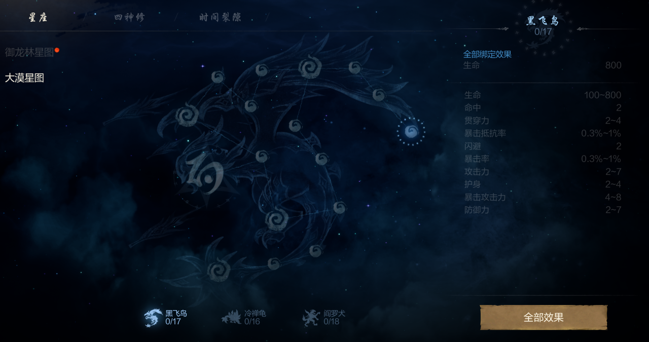而星图-大漠星图,四神修以及时间裂隙星图,则都需要在等级达到50之后才能解锁。