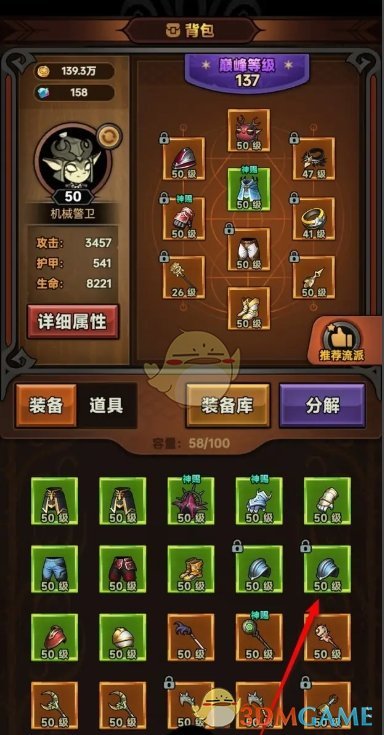1、首先点击左下角的装备前往详情页中;