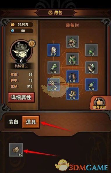 1、首先我们点击游戏主页左下角的装备前往详情页;